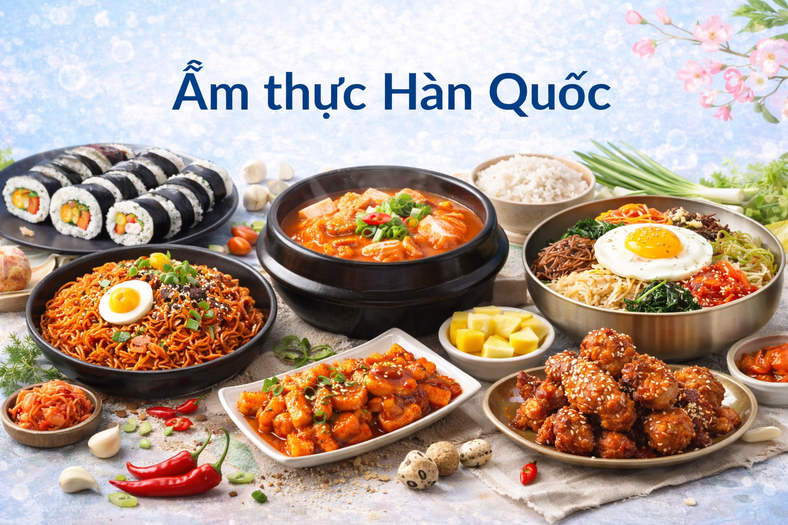 Ẩm thực Hàn Quốc (K-food) nổi tiếng thế giới nhờ sự kết hợp hài hòa giữa các nguyên liệu tự nhiên, kỹ thuật lên men truyền thống và sự đa dạng trong cách chế biến theo mùa. Dưới đây là những nhóm món ăn tiêu...