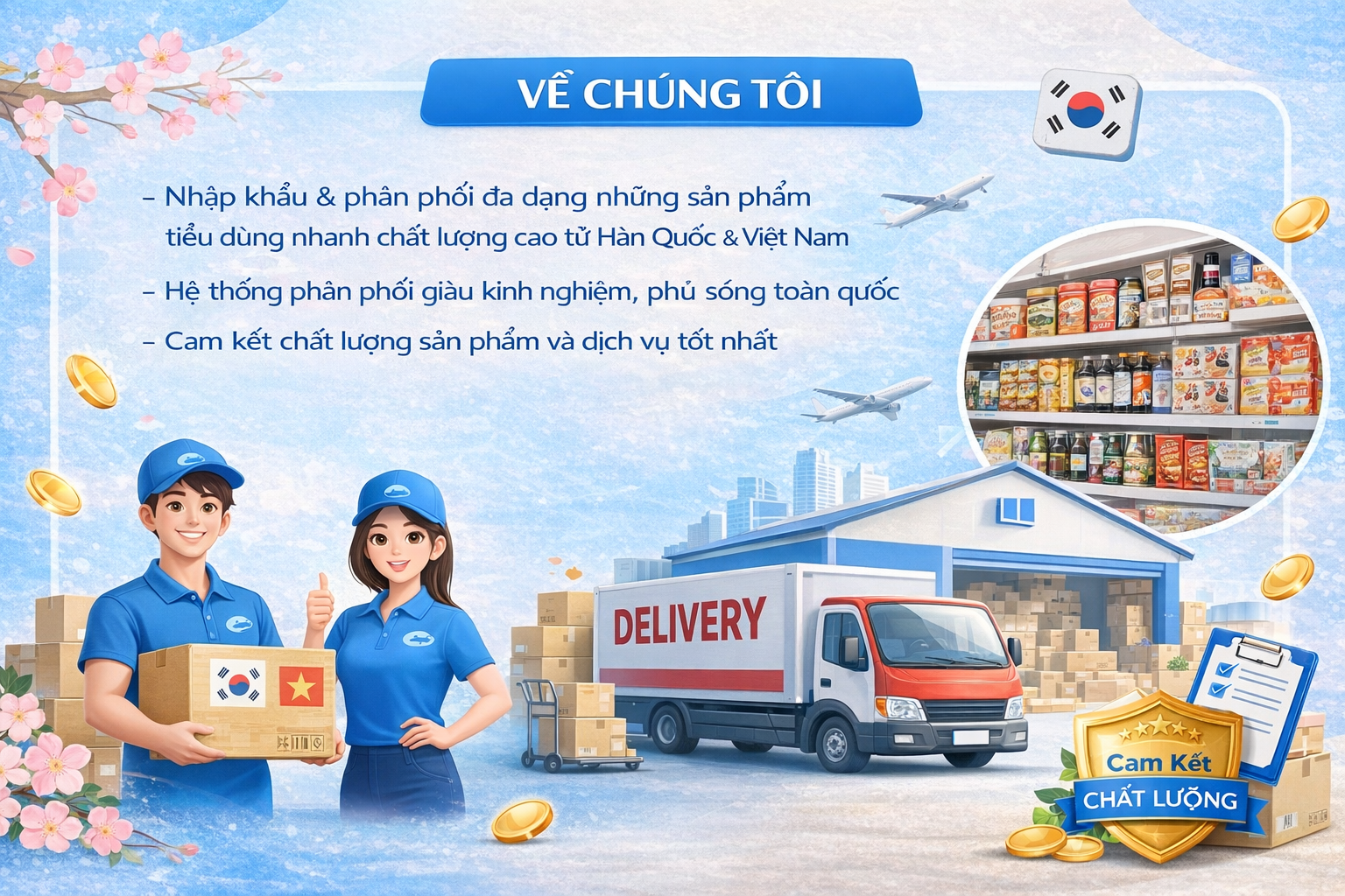Chúng tôi hợp tác với nhiều thương hiệu uy tín trong và ngoài nước, cung cấp đa dạng các dòng sản phẩm tiêu dùng phục vụ nhu cầu hàng ngày của người tiêu dùng như: thực phẩm ăn liền, thực phẩm chế biến, sản phẩm chăm sóc cá nhân và các mặt hàng tiêu dùng thiết yếu khác.