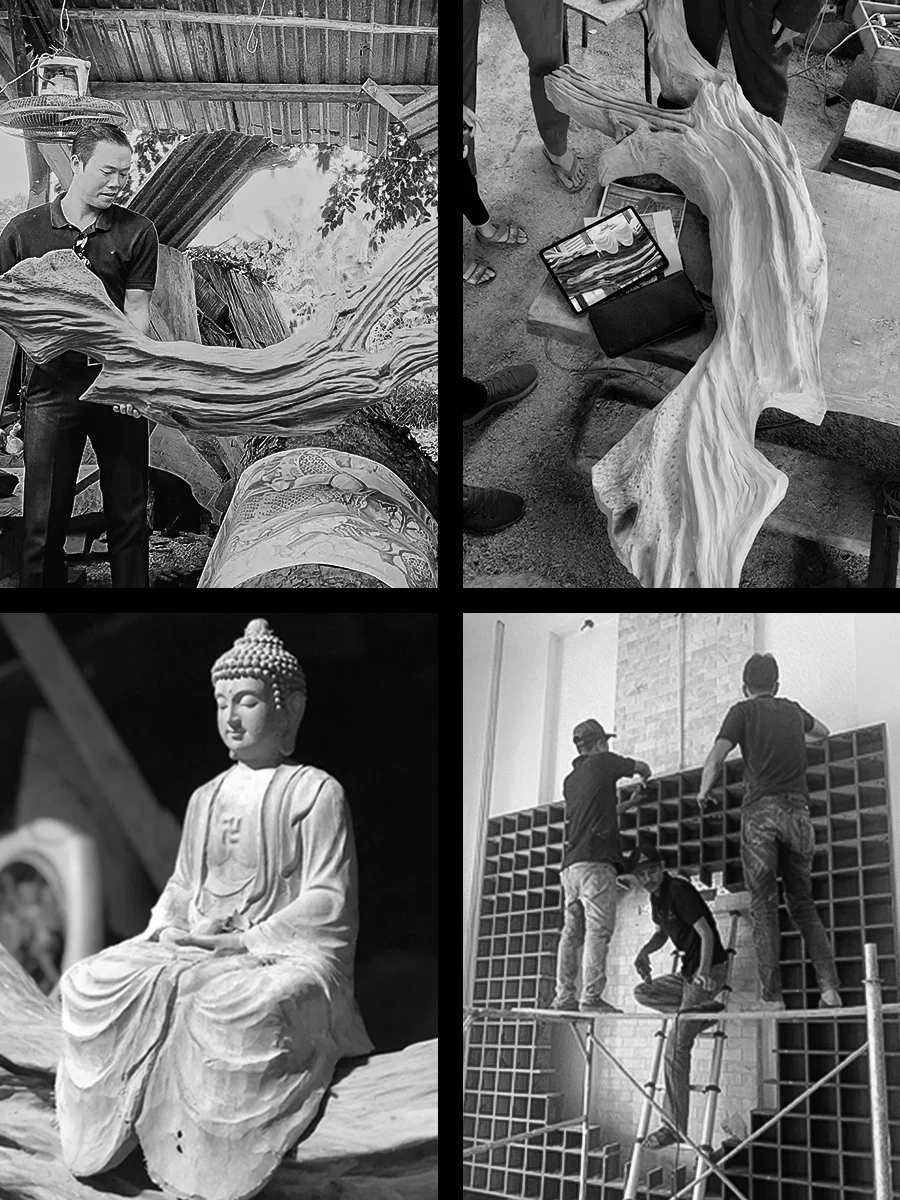 Để có những sản phẩm độc đáo, chính là nhờ sự kết hợp nhuần nhuyễn từ khâu thiết kế đến thi công, giữa kiến trúc sư và đội ngũ sản xuất chuyên nghiệp.
